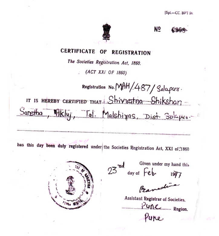 | 4 | COMPLETE ADDRESS WITH PIN CODE | A/P - YASHWANTNAGAR TAL-MALSHIRAS DISTRICT-SOLAPUR 413118 |
